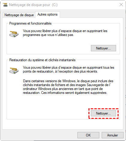 Toutes ces trois fonctionnalités de sauvegarde Windows ont besoin de libérer de l'espace disque.