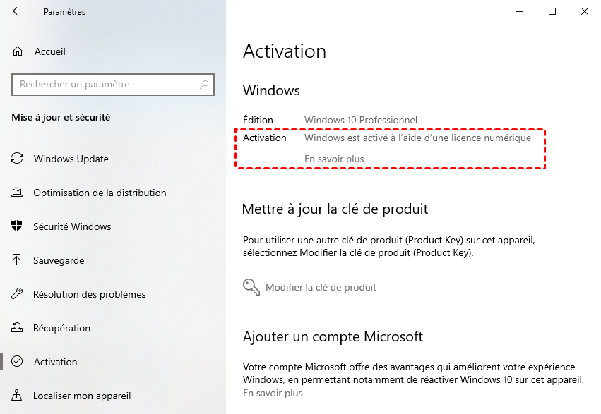 Si on vous dit que votre Windows n'est pas activé, vous pouvez le réactiver en utilisant un compte Microsoft. L'essentiel est que vous avez lié la licence au compte Microsoft.