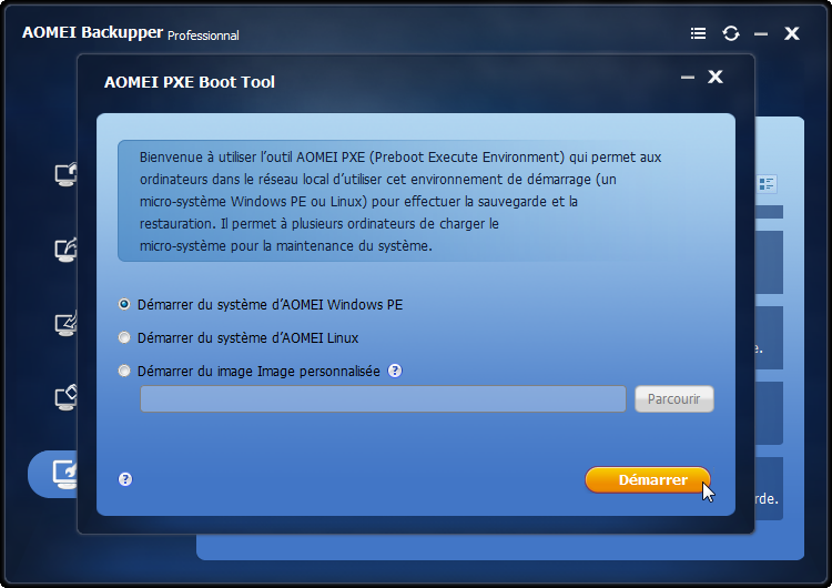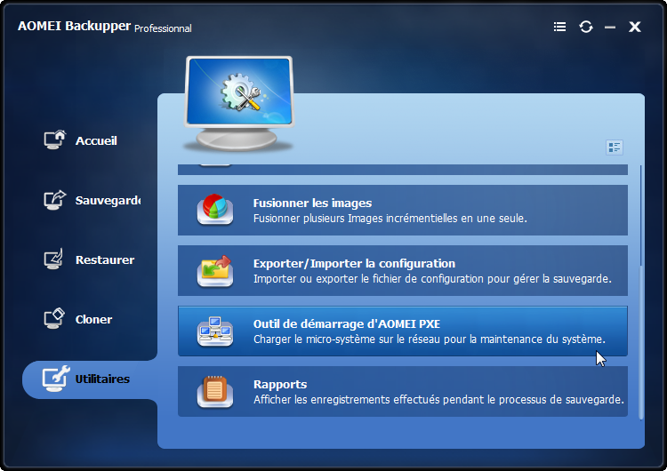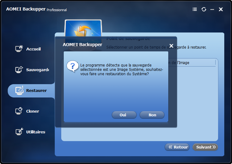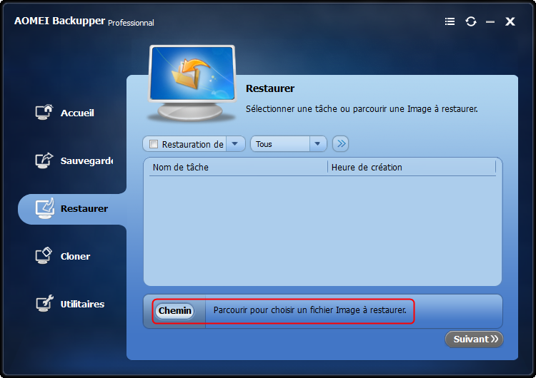 Pour effectuer une restauration universelle avec AOMEI Backupper, veuillez d'abord créer une image de sauvegarde avec ce programme, voici les étapes détaillées.