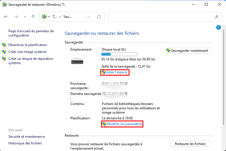 — L'image de sauvegarde n'est pas facile à gérer en raison de l'utilisation de plusieurs logiciels. Vous devez créer une sauvegarde de fichiers avec l'historique des fichiers et une sauvegarde d'image système avec Sauvegarder et restaurer (Windows 7).