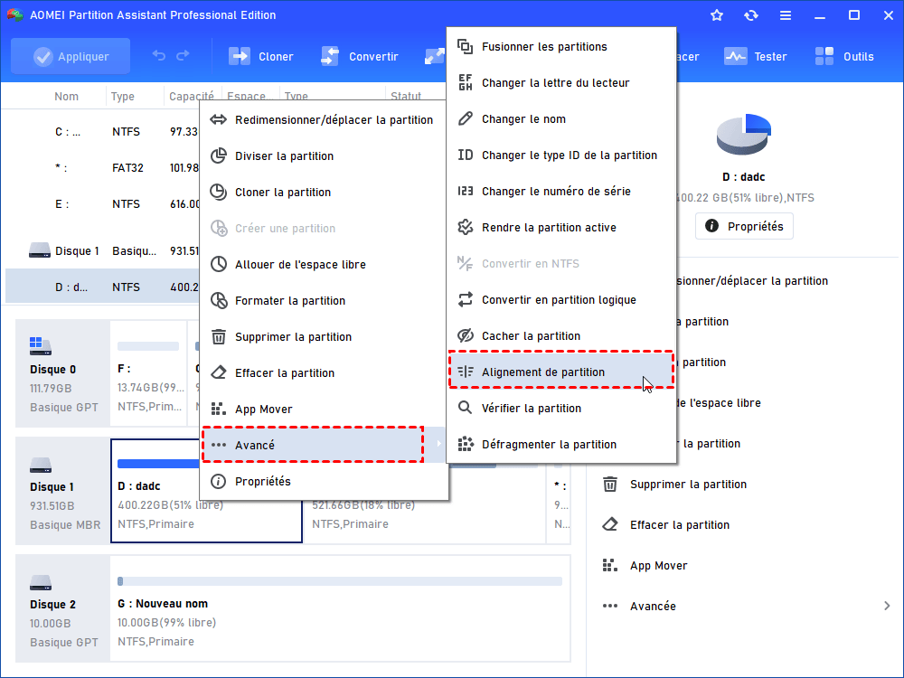 #2. Utilisez AOMEI Partition Assistant Professional pour effectuer l'alignement 4K du SSD pour accélérer les performances du SSD.
