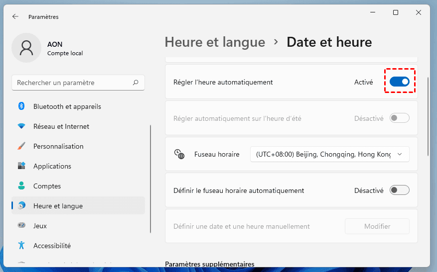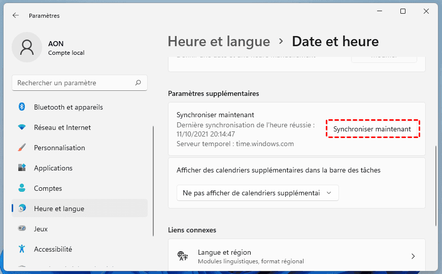 Une date et une heure incorrectes sont l'une des causes de l'erreur de mise à jour 0x80070002 de Windows 11, il est donc nécessaire de synchroniser l'heure de votre ordinateur avec l'heure Internet.