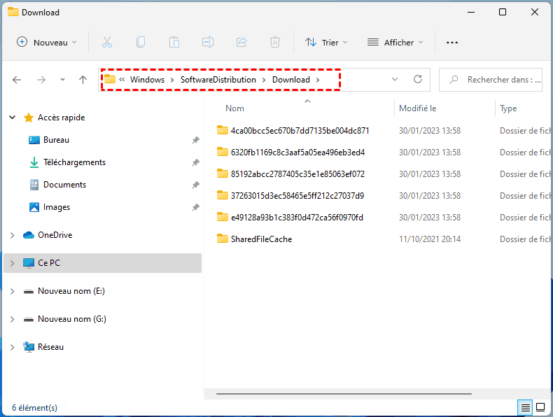 Les fichiers Windows Update brisés ou supprimés sont la cause générale du code d'erreur 0x80070002. Supprimer des données de Dossier SoftwareDistribution (dépôt des fichiers de mise à jour Windows) peut être une solution efficace.