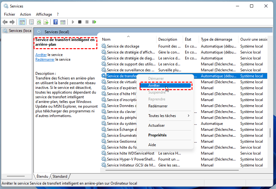 3. Répétez la même opération pour le Service de transfert intelligent en arrière-plan et les Services cryptographiques.