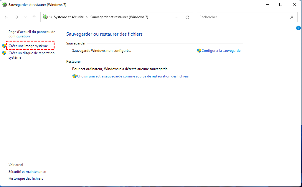 Étape 2. Accédez à Système et sécurité, puis cliquez sur Sauvegarder et restaurer (Windows 7).