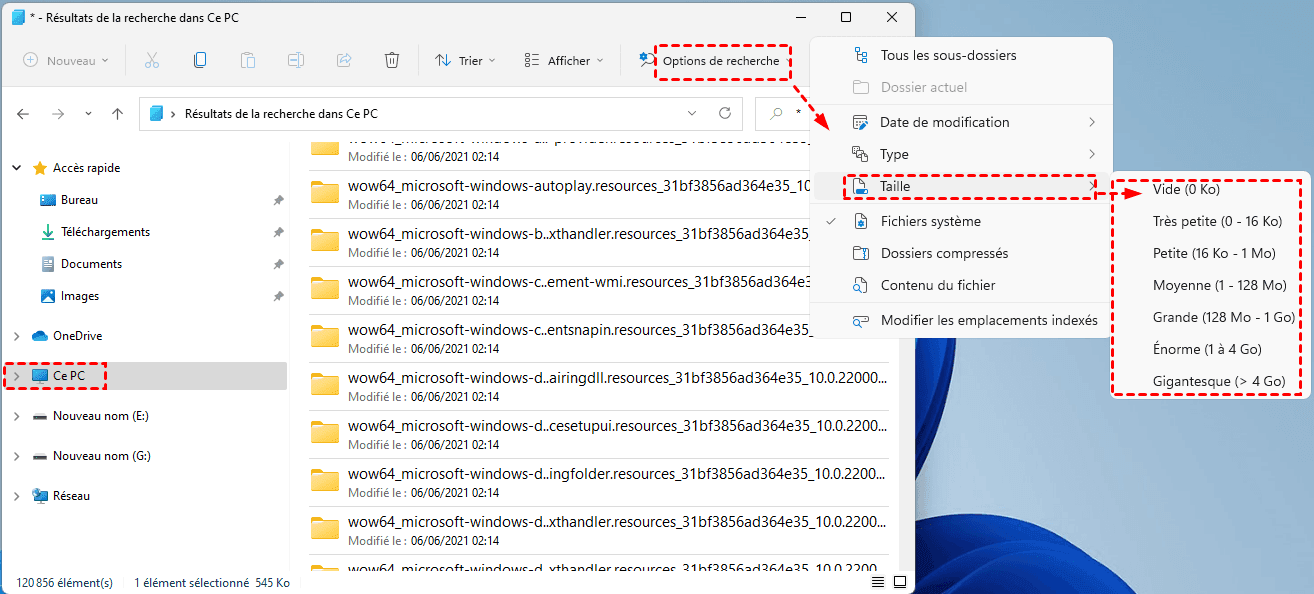 Si vous ne savez pas comment trouver des fichiers volumineux sur Windows 11, vous pouvez vous référer aux 2 méthodes simples ici.