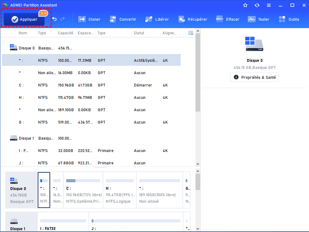Note : Ce logiciel supporte également la conversion de GPT en MBR. Pour convertir GPT en MBR sans système d'exploitation, vous pouvez créer un support de démarrage, démarrer votre PC à partir de ce dernier pour entrer en mode Windows PE pour terminer la conversion.