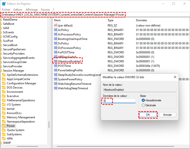 Méthode 2. Désactiver le démarrage rapide dans Windows 11 via l'Éditeur de registre
