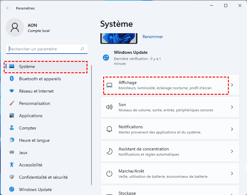 Méthode 1. Désactiver la rotation automatique de l'écran via Paramètres Windows