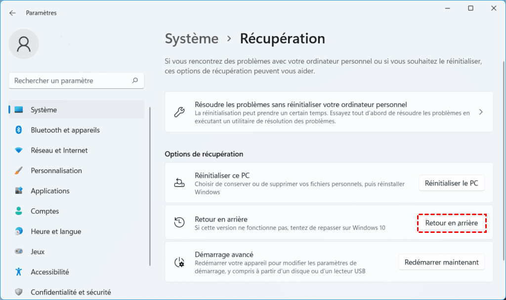 Peut-être avez-vous découvert que vous n'aimez pas le système d'exploitation ou vous avez rencontré des problèmes de compatibilité et de mise à jour. Dans ces cas, revenir à une version précédente comme 22H2 ou 21H2 pourrait être une option viable. Il est possible de rétrograder de Windows 11 23H2 à 22H2 si vous avez effectué la mise à niveau vers la mise à jour de Windows 11 2023.