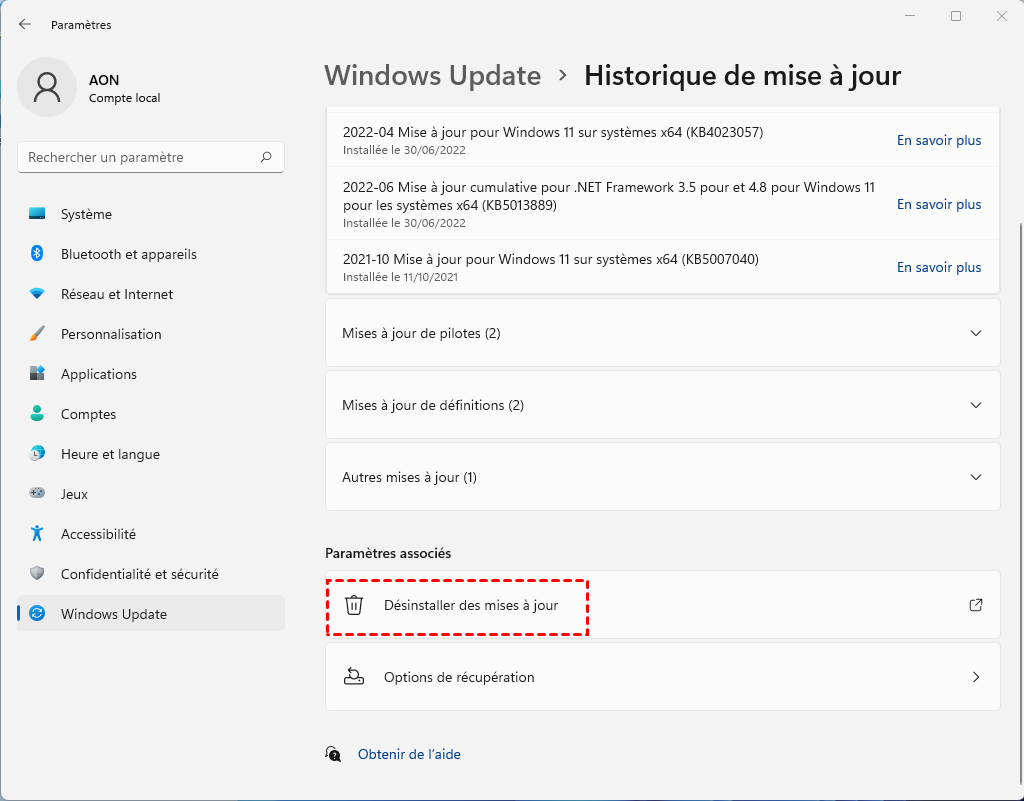 Une fois toutes les procédures de désinstallation terminées, votre système reviendra soit à Windows 11 22H2, soit à 21H2.