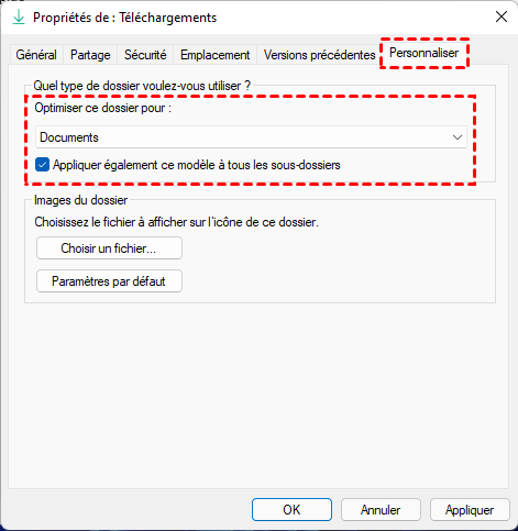 Pour résoudre le dossier de Téléchargements de Windows 11 qui ne répond pas, vous pouvez également modifier les propriétés du dossier Téléchargements et restaurer les données du dossier.