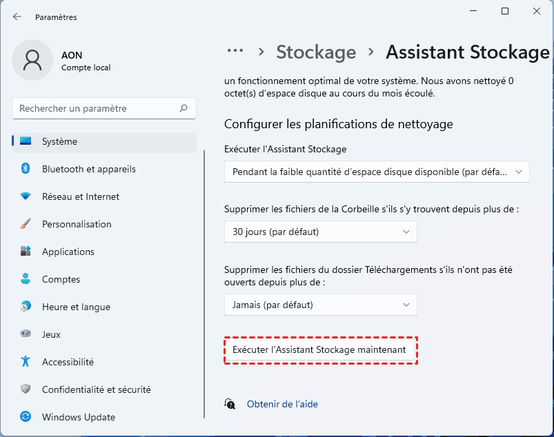 Windows 11 est livré avec un outil intégré appelé Assistant Stockage qui peut vous aider à libérer automatiquement de l'espace, à supprimer les fichiers inutiles et à vider la corbeille. Vous pouvez utiliser cet outil pour vous aider à supprimer le dossier Windows.old de Windows 11.