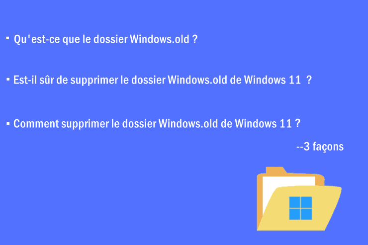 Est-il sûr de supprimer le dossier Windows.old de Windows 11? Comment faire pour libérer de l'espace ? Lisez cet article pour savoir. Vous pouvez également trouver un moyen efficace de protéger votre système.