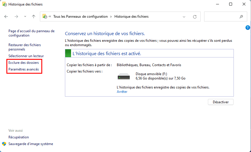 Étape 1. Accéder à l'outil d'historique des fichiers sur Windows 11, il y a trois manières :