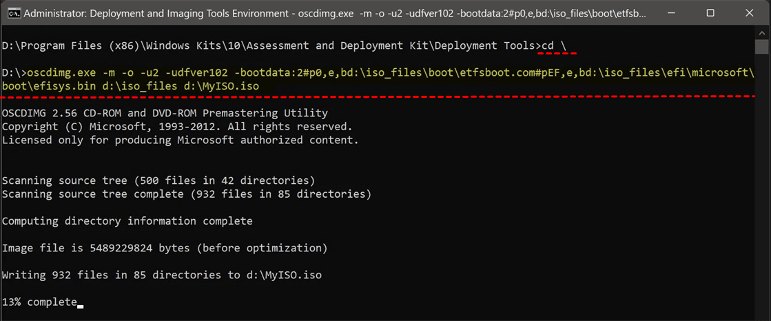 oscdimg.exe -m -o -u2 -udfver102 -bootdata:2#p0,e,bd:\iso_files\boot\etfsboot.com#pEF,e,bd:\iso_files\efi\microsoft\boot\efisys.bin d:\iso_files d:\MyISO.iso