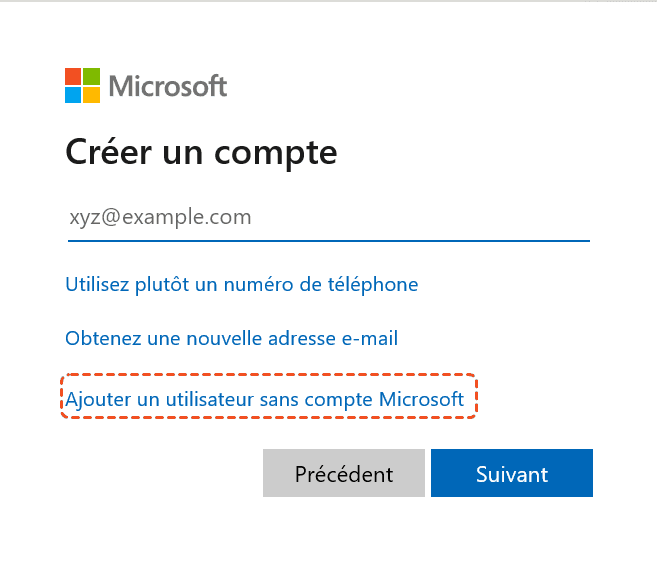 - Cliquez ensuite sur Ajouter un utilisateur sans compte Microsoft.