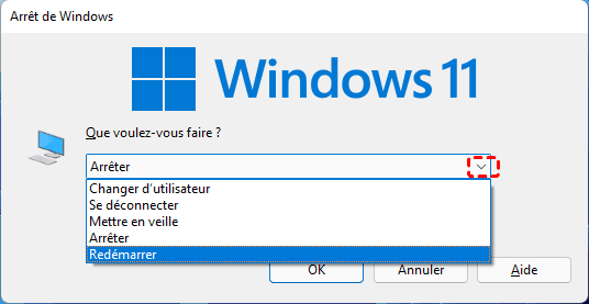 - Cliquez sur le menu déroulant, sélectionnez Redémarrer et cliquez sur OK.