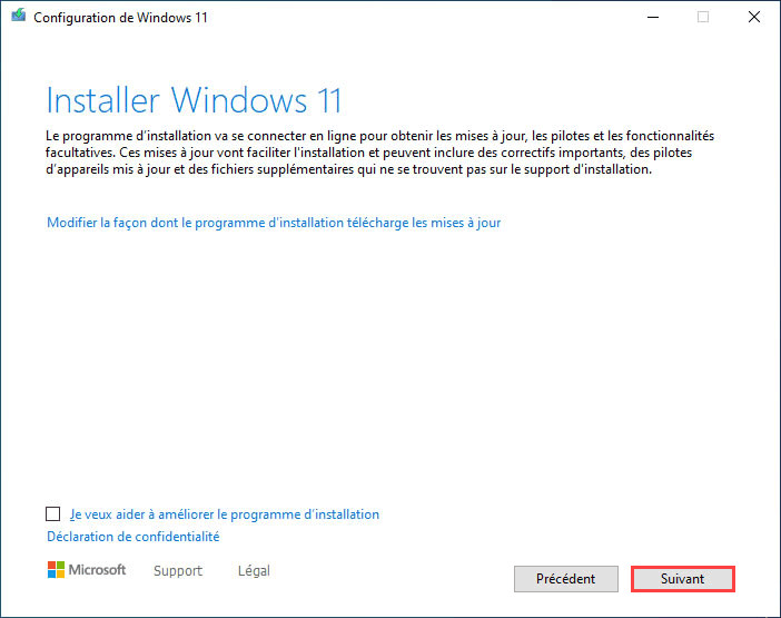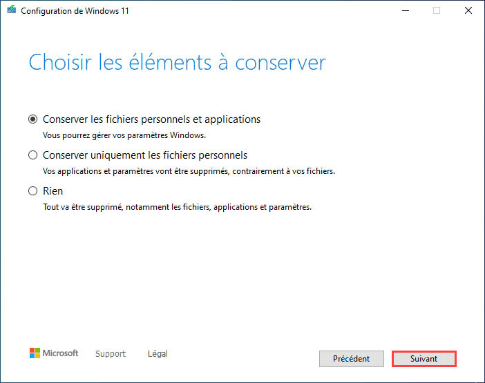 Méthode 2. Mettre à niveau vers Windows 11 et conserver les fichiers à l'aide de l'assistant d'installation