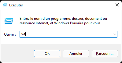 Étape 1. Ouvrez la fenêtre Exécuter, tapez « wt » et appuyez sur Ctrl + Shift + Enter pour ouvrir un terminal Windows avec un accès administratif.