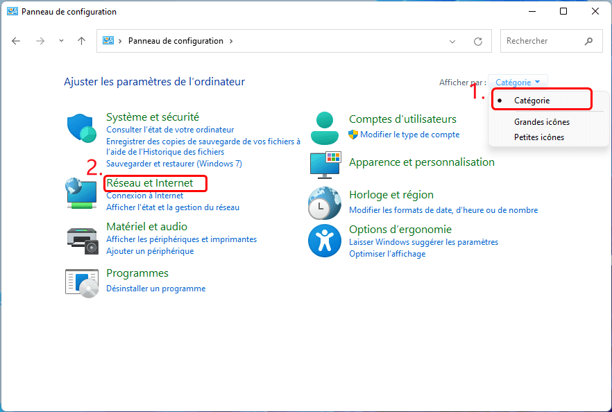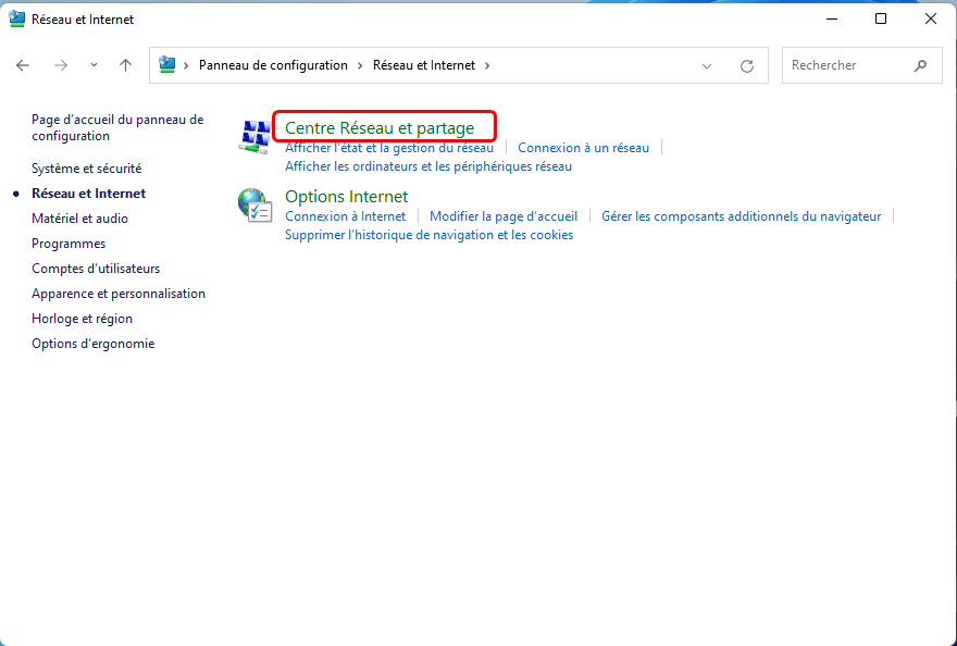 Étape 2. Dans le Panneau de configuration, sélectionnez Réseau et Internet.