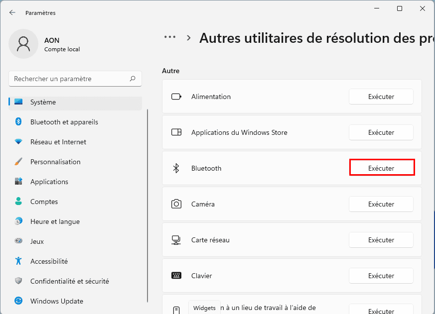 1. Accédez à Démarrer > Paramètres > Système > Résolution des problèmes > Autres utilitaires de résolution des problèmes.