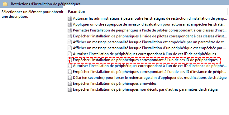 Étape 3. Activez l’option « Empêcher l’installation de périphériques correspondant à ces ID de périphériques » si vous connaissez l’ID matériel.