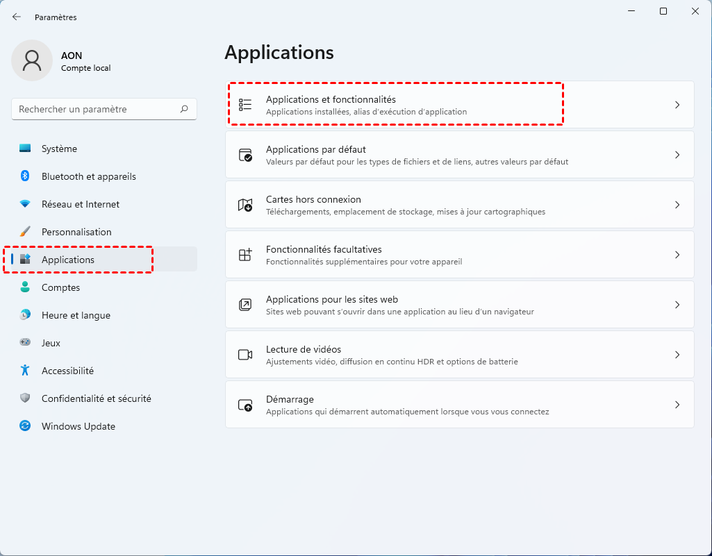 1. Appuyez sur Windows + I pour ouvrir Paramètres et cliquez sur Applications > Applications et fonctionnalités.