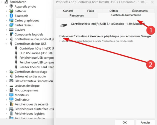 Étape 6. Décochez l'option Autoriser l'ordinateur à éteindre ce périphérique pour économiser de l'énergie et cliquez sur OK pour résoudre le problème du transfert de fichiers USB qui ne fonctionne pas sous Windows 11.