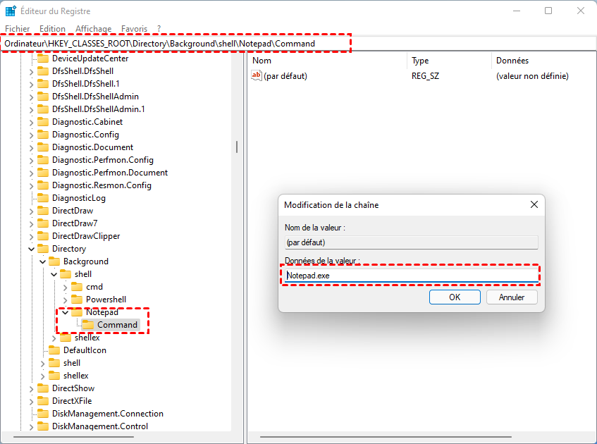HKEY_CLASSES_ROOT\Répertoire\Arrière-plan\shell