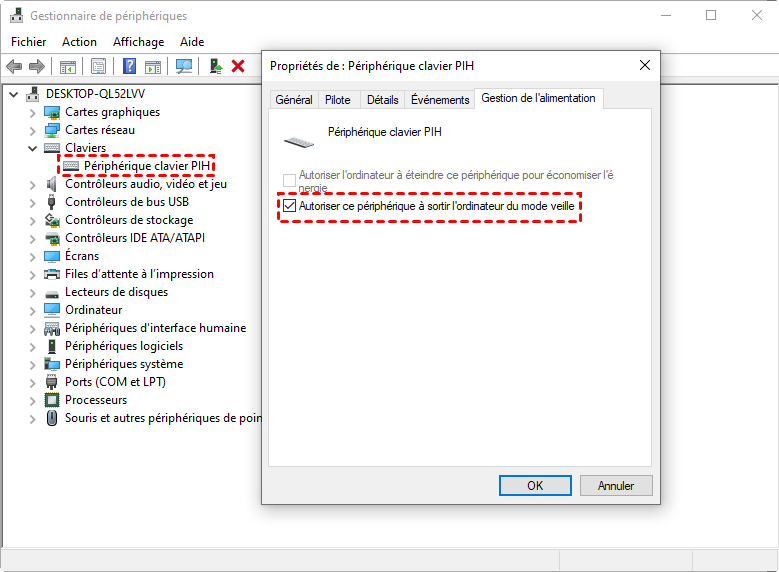 3. Sous l'onglet Gestion de l'alimentation, assurez-vous que Autoriser ce périphérique à sortir l'ordinateur du mode veille est sélectionné, puis cliquez sur OK.