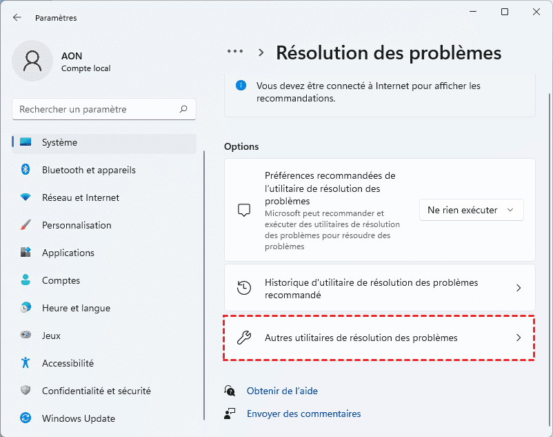1. Appuyez sur Windows + I pour ouvrir Paramètres -> Système -> Résolution des problèmes -> Autres utilitaires de résolution des problèmes.
