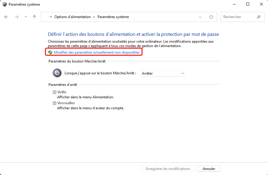 2. Cliquez sur Modifier les paramètres actuellement non disponibles et ouvrez-le.