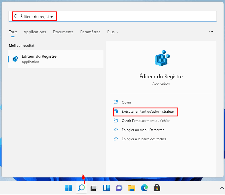 Étape 1. Appuyez une fois sur la touche Windows, tapez Éditeur du Registre et sélectionnez Exécuter en tant qu'administrateur pour ouvrir le programme.