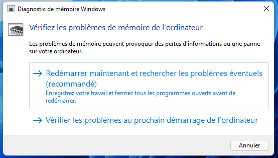 Méthode 5. Exécuter l'outil de diagnostic de mémoire Windows