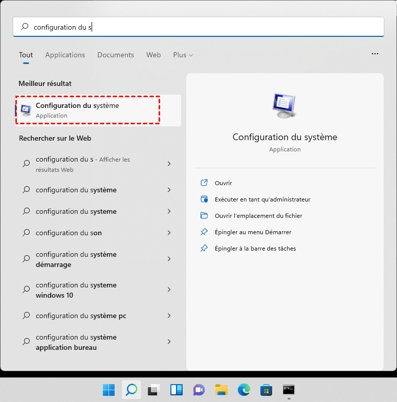 1. Recherchez « configuration du système » dans la barre de recherche Windows et sélectionnez-la dans les résultats de la recherche.