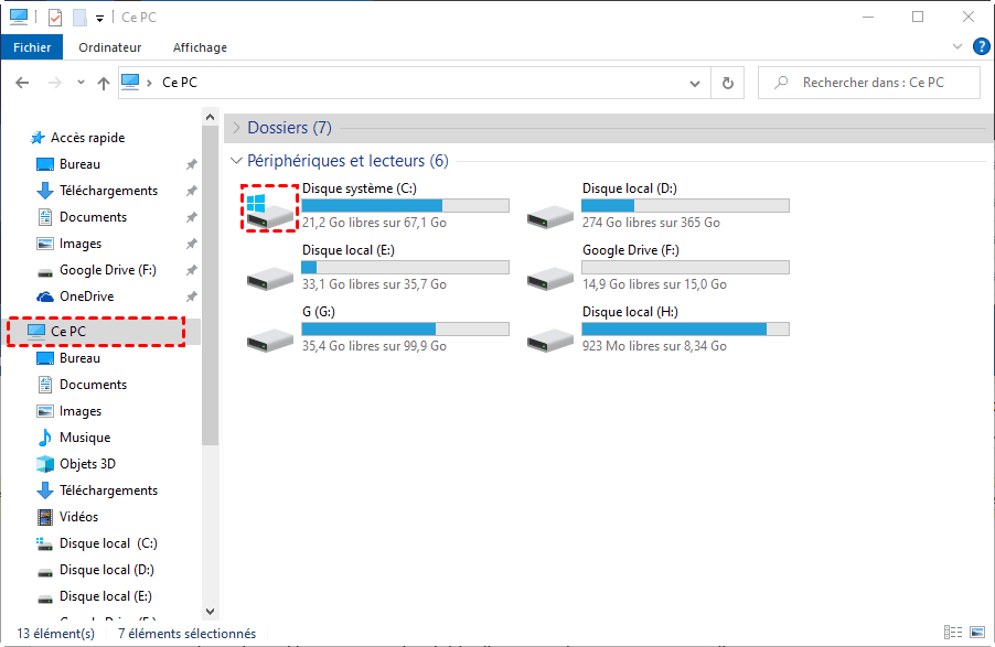 Étape 2. Accédez à Ce PC et vérifiez que le disque (généralement C:) avec l'étiquette Windows dispose d'au moins 20 Go d'espace libre.