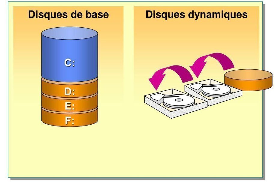 ▸ Une plus grande flexibilité pour la gestion des volumes : le disque dynamique utilise une base de données pour suivre les informations sur le volume dynamique sur un ou plusieurs disques dynamiques et chaque disque dynamique conserve une copie de la base de données. Mais le disque de base utilise une table de partition pour garder une trace des informations. Ainsi, vous pouvez récupérer plus facilement vos données si vous utilisez un disque dynamique.