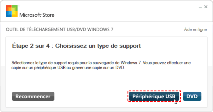 Remarque : Votre clé USB sera formatée pendant ce processus. Il est recommandé de copier ou de sauvegarder des fichiers importants à l'avance.