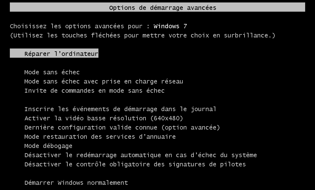 1. Réparation de Windows 7 avec « Options de démarrage avancées »