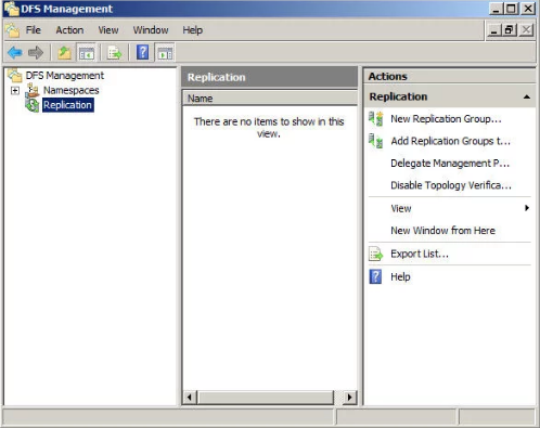 Étape 1. Cliquez sur Démarrer -> Outils d'administration ->DFS Management , puis cliquez avec le bouton droit sur Réplication et choisissez Nouveau groupe de réplication dans la console de DFS Management.