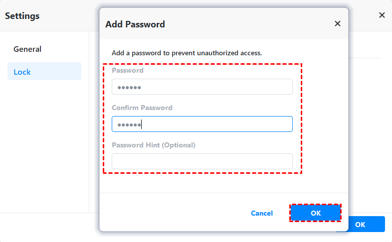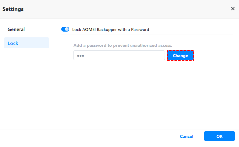Lock AOMEI Backupper with a password. In this way, you can set a password to prevent unauthorized access. It is a way for your backup and data security.