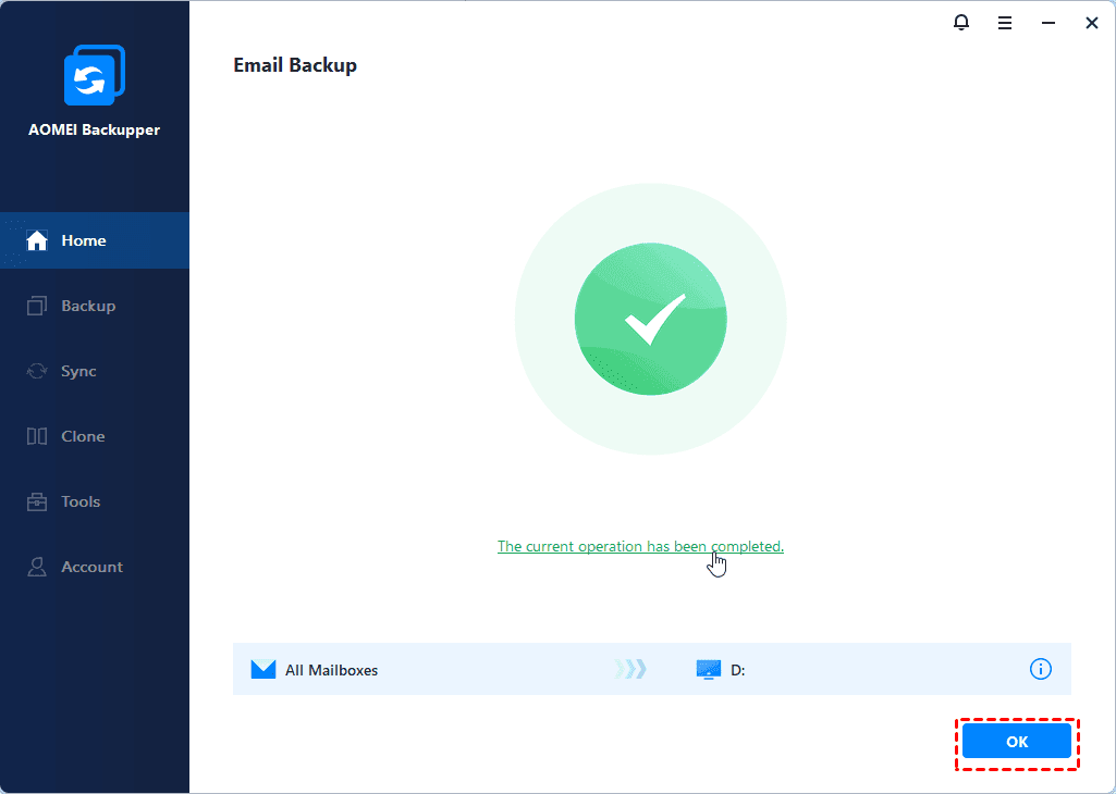 AOMEI Backupper email restore is based on AOMEI Backupper email backup. You should already have at least one email image made by AOMEI Backupper (whatever the source email is.