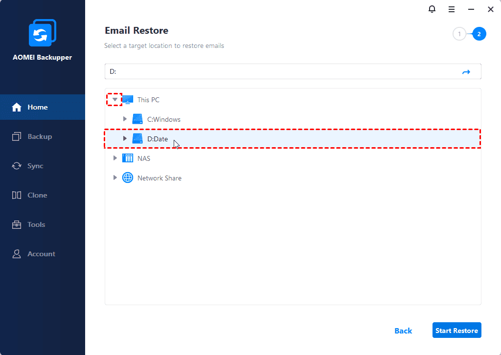 How to Restore Email Backup with AOMEI Backupper in Windows 10