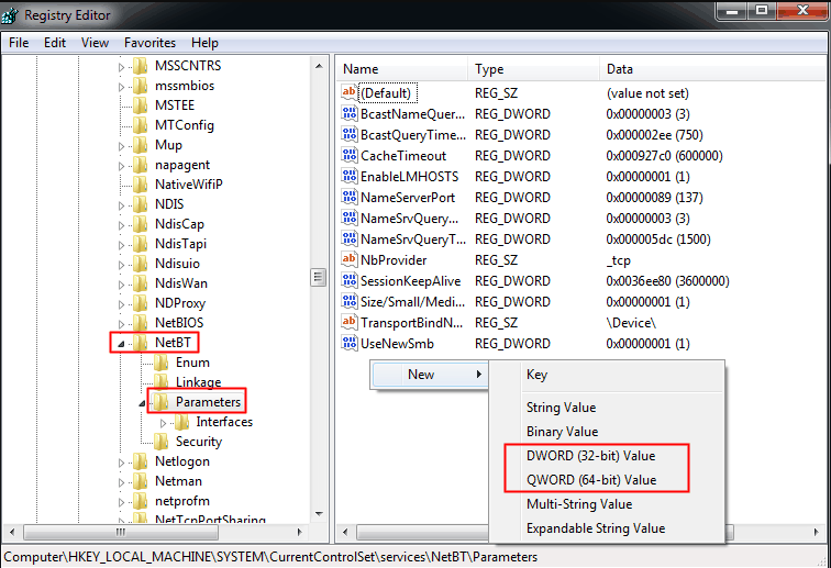 HKEY_LOCAL_MACHINE\SYSTEM\CurrentControlSet\services\NetBT\Parameters