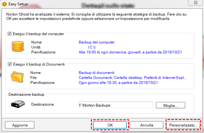 - Oppure puoi fare clic su Personalizzato... per creare un backup in base alle tue esigenze.