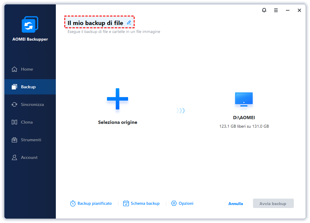 Nota che un singolo backup salva solo i file in un determinato momento. Per includere tutte le modifiche successive, è necessario creare un backup programmato per proteggere continuamente i tuoi file.