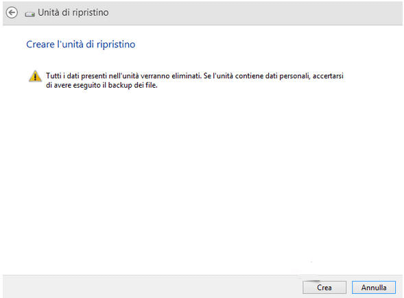 5. Fa clic su Crea per iniziare a creare l'unità di ripristino.