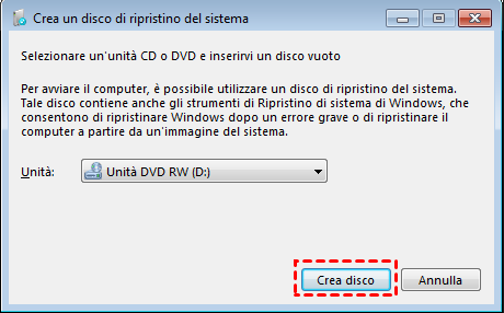 Metodo 2. Fa un disco di ripristino del OS in Windows 10/8/7/11
