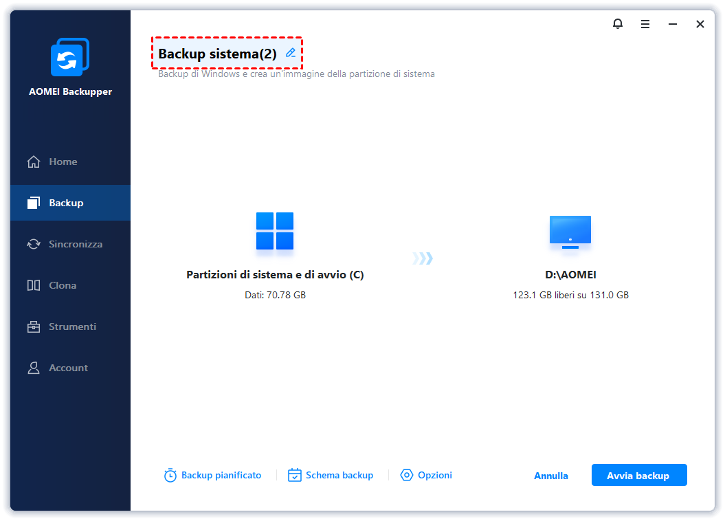 1. Scarica AOMEI Backupper Standard, installalo e lancialo.